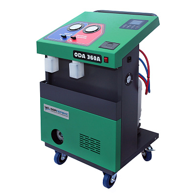 Автоматическая станция для заправки кондиционеров ОДА Сервис ODA-360A - новая автоматическая станция, предназначенная для обслуживания систем кондиционирования воздуха автомобилей. С ее помощью вы сможете выполнить полный цикл по обслуживанию система АС автомобиля в автоматическом или ручном режимах. Станция комплектуется встроенным принтером. С его помощью вы сможете получать отчет по обслуживанию автомобиля. В отчете будет следующая информация: данные сервиса, гос номер авто, объем откаченного фреона, время вакуумирования, объем заправленного масла и фреона.