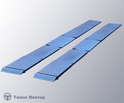 Комплект поворотных платформ используется при выполнении работ на стендах сход-развал для поперечной разгрузки передних колес грузового автомобиля.