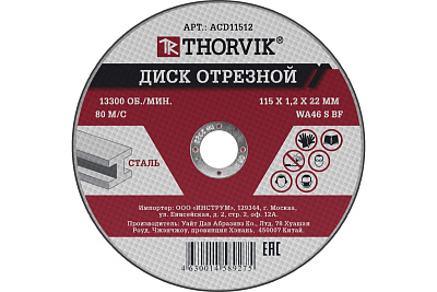 Диск отрезной абразивный по металлу (355х3.5х25.4 мм) Thorvik 52778