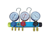 Пятивентильный манометрический коллектор предназначен для измерения и контроля давления в высокой и низкой магистралях системы кондиционирования автомобилей. Также данный коллектор оснащен вакуумметром, который используется для контроля создаваемого разряжения при создания вакуума в системе кондиционирования.Особенности: