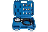 Манометр обеспечивает визуальный контроль за изменением давления масла. Комплект поставляется в прочном пластиковом кейсе с ручкой и защелками для компактного хранения и удобной переноски.