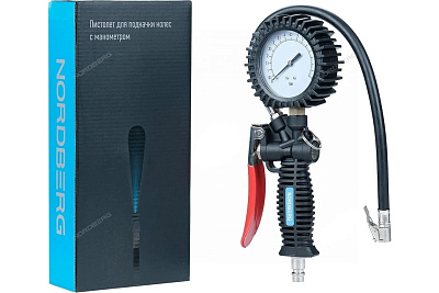 Пистолет для подкачки колес, манометр NORDBERG 80 мм Ti61 имеет эргономичный корпус с широкой управляемой рукояткой.
