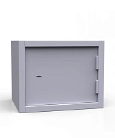 Съемные полки позволяют размещать крупногабаритные предметы. Дверь усиленной конструкции. Защита обеспечивается замком сувальдного типа «ПРО САМ» (3 ключа в комплекте) и почтовым замком Euro-Locks (2 ключа в комплекте). Вся линейка окрашивается порошковой краской светло-серого цвета.