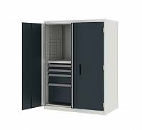 - Шкаф дополнительно можно оборудовать ящиками, полками и другими элементами для эргономичного размещения инструментов.