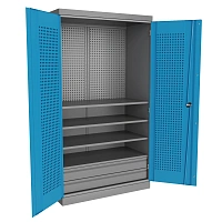 Инструментальный шкаф серии «Technic» для аккуратного и безопасного хранения оснастки и инструмента в мастерских и производственных зонах. Корпус из листовой стали, двери запираются надежной ригельной системой.