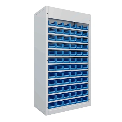 Шкафы ячеистого хранения серии CELL — идеальное решение для организации рабочего пространства. Шкафы подходят для хранения мелких деталей, метизов и комплектующих в мастерских, цехах и других производственных зонах. Они выполнены из высококачественной листовой стали и отличаются устойчивостью и надежностью. В шкафах можно настроить внутреннее устройство под индивидуальные нужды, выбирая лотки различной высоты и ширины, а также добавляя сменные полки. Для обеспечения безопасности можно установить роллетную систему запирания, что позволит защитить содержимое от несанкционированного доступа. Шкаф с полками и лотками: 12 полок и 72 лотка С2 (ШxВxГ) 156x90x500 мм.