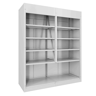 Корпус выполнен из высококачественной листовой стали, отличается устойчивостью и надежностью. Конструкция легко адаптируется под задачи: можно выбирать лотки разной высоты и ширины, добавлять сменные полки. Для защиты содержимого доступна опциональная роллетная система запирания. Ключевые параметры: стальная конструкция, конфигурация без лотков с полками, в версии P8 предусмотрено 8 полок; возможна установка роллетной системы; цвет — серый.