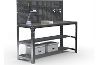 Стол металлический Металекс серия KIT 750х1300х400 мм, мм, две полки мм, перфопанель с комплектом аксессуаров, серый 201382