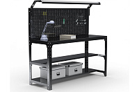 Стол металлический Металекс серия KIT 750х1500х400 мм, 2-е полки мм, перфопанель с комплектом освещения, черный 201618