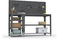 Стол с боковыми полками и перфопанелью предназначен для удобной организации отдельного рабочего места. Используется на производствах, складах, в гаражах, мастерских и других объектах. Благодаря болтовому соединению имеет возможность многократной сборки/разборки конструкции. Перфопанель с комплектом аксессуаров является дополнительный элементом, который увеличивает рабочее пространство и структурирует хранение инструмента. Стол: траверсы,стойки,столешница-1,5 мм, толщина перфопанели 0.8 мм. Возможность легкого объединения с другими моделями столов, тумб с полками, столов с ящиками и другими изделиями серии KIT. При соединении болта с гайкой дают прочную затяжку элементов. Цвет : серый . Порошковая покраска.