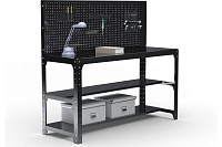 Стол металлический Металекс серия KIT 750x1200x500 мм, две полки мм, перфопанель с комплектом аксессуаров, черный 201549