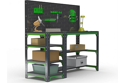Стол металлический Металекс серия KIT 750x1200x500 + перфопанель с комплектом аксессуаров), О, рост Ч , рост 201207