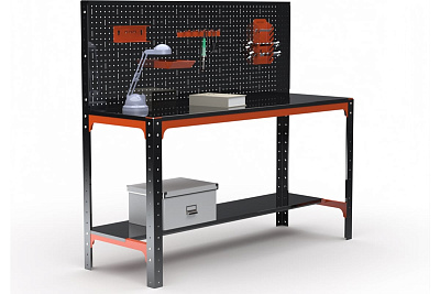 Металлический стол предназначен для удобной организации рабочего места. Используется на производствах, складах, в гаражах, мастерских и других объектах. Благодаря болтовому соединению имеет возможность многократной сборки, рост разборки конструкции. Помимо столешницы имеется дополнительная нижняя полка - 1 шт. Перфопанель с комплектом аксессуаров является дополнительный элементом, который увеличивает рабочее пространство и структурирует хранение инструмента. Толщина перфопанели 0. 8 мм. Возможность легкого объединения с другими моделями столов, тумб с полками, столов с ящиками и другими изделиями серии KIT. При соединении болта с гайкой дают прочную затяжку элементов. Преимуществами данного стола являются его практичность, мобильность, прочность и долговечность в использовании. Стол выполнен из стали толщиной 1,5 мм. Полка выполнена из стали 0,8 мм. Крепление: болтовое. Цвет: оранжево-чёрный. Порошковая покраска.Технические характеристики