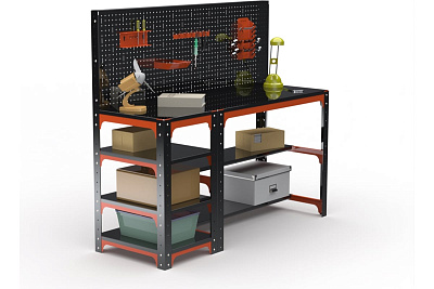 Стол с боковыми полками и панелью предназначен для удобной организации отдельного рабочего места. Используется на производствах, складах, в гаражах, мастерских и других объектах. Благодаря болтовому соединению имеет возможность многократной сборки/разборки конструкции. Перфопанель с комплектом аксессуаров является дополнительный элементом, который увеличивает рабочее пространство и структурирует хранение инструмента. Стол: траверсы, стойки, столешница-1, 5 мм, толщина перфопанели 0. 8 мм. Возможность легкого объединения с другими моделями столов, тумб с полками, столов с ящиками и другими изделиями серии KIT. При соединении болта с гайкой дают прочную затяжку элементов. Цвет :оранжево-чёрный . Порошковая покраска.Технические характеристики