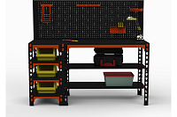 Металлический стол предназначен для удобной организации отдельного рабочего места на производствах, складах, гаражах, мастерских, и на других объектах. Конструкция имеет прочные опоры из углового профиля. Специальная перфорация позволяет изменить высоту полок.