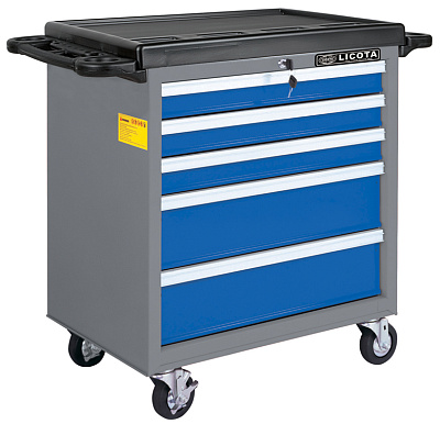 Тележка инструментальная, 5 полок, пласт. столешница, сине-серая Licota AWX-2602BTS
