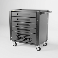 Garopt Gt5.grey – это инструментальная тележка серого цвета с пятью выдвижными ящиками, которая используется для хранения и транспортировки инструмента по ремонтной зоне.