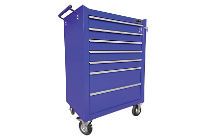 Тележка инструментальная Ombra OTT47B-R 55893 синяя используется для хранения инструмента и оборудования в гаражах. Максимальная загрузка тележки ограничена 200 кг, каждого ящика в отдельности - 25 кг. Конструкция оснащена колесами для удобства транспортировки, а также рукоятью. Различная высота (5 ящиков - 75 мм, 2 ящиков - 157 мм) позволяет разделить необходимый инструмент и оборудование согласно их размерам.