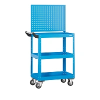 Прочная тележка с перфорированной панелью и бортиками разной высоты, выдерживает до 100 кг. Удобна для хранения инструмента в гараже или мастерской.