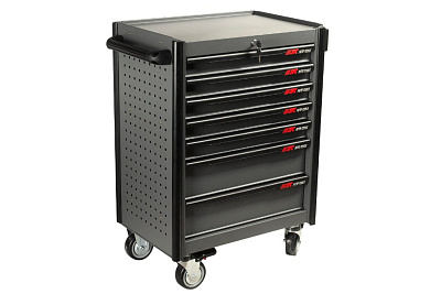 Инструментальная тележка с набором инструментов JTC 5021+344 позволяет удобно расположить оборудование и оснастку, что максимально оптимизирует рабочий процесс. Специальные борты защищают оборудование от повреждений, а также гарантируют безопасность автомеханика. Роликовые направляющие служат для плавного открывания или закрывания секций. Нескользящие вкладки в ящиках и коврик из АБС способствуют комфортному хранению мелких деталей. Закрытый тип ящиков исключает выпадение инструмента во время перемещения.