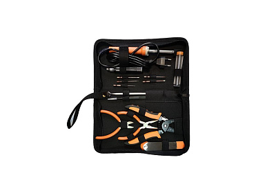 Паяльник электрический с набором инструментов и аксессуаров 14пр. (220V,50Hz,60W, пинцет-2шт, кусачки, утконосы, отвертка6пр, съемник изол., расходники) в сумке.