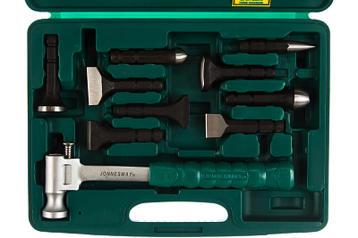 Многофункциональный молоток с сменными головками для жестяных работ Jonnesway AG010142 предназначен для использования при проведении кузовного ремонта корпуса и крыльев автомобилей. Инструмент изготовлен из качественного материала, что гарантирует его долгий срок службы. Высокая функциональность приспособления обеспечивается 9 насадками, входящими в набор. Насадки изготовлены из прочной хромванадиевой стали.