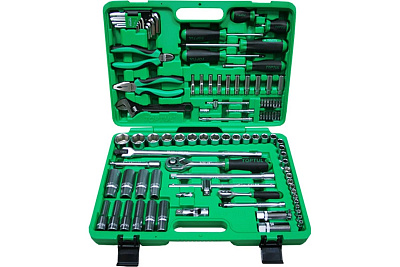 Набор инструментов 1/4", 1/2" 6 граней 97 предметов состоит из 97 предметов и может использоваться как в быту, так и для ремонта автомобилей в гараже автолюбителя или в профессиональных сервисах. Инструменты набора изготовлены из высококачественной хромованадиевой стали, что обеспечивает прочность и долговечность.Технические характеристики