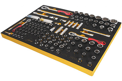 Универсальный набор инструмента, комплектация BMW в ложементе 119шт JTC-BW1119 - это комплект трещоточных отверток, широкого ассортимента бит и торцевых головок, адаптеров и удлинителей, который подойдет для пополнения инструментального арсенала любого мастера. Представленный набор широко распространен для эксплуатации в автосервисных мастерских и на СТОА.