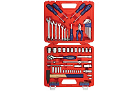 Универсальный набор инструментов 77шт МАСТАК 0-077C станет прекрасным помощником для монтажно-демонтажных работ с различными конструкциями и механизмами в гараже, мастерской, автосервисе или в производственном цехе и т.д. В комплекте представлено большое разнообразие ручных инструментов и приспособлений для профессионального использования. Для защиты компонентов от утери и удобства транспортировки набора предусмотрен прочный пластиковый чемодан с надежными металлическими замками.