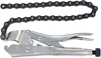 Зажим с фиксатором 225мм для труб 60-140мм KING TONY 6655-09 используется для прочного обхвата и фиксации заготовок при монтаже трубных систем. Изделие выполнено из прочного металла, имеет удобную форму и цепной захват.