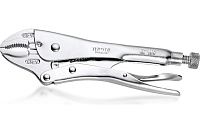 Зажим с фиксатором оснащен рычагом для быстрого размыкания. Модель имеет резак и механизм регулировки ширины захвата. Инструмент изготовлен из высокопрочной CR-V- стали. Никелированная поверхность исключает возникновение коррозии.