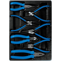 Ложемент для набора съемников стопорных колец 9-40207GP, PVC KING TONY 84711320B выполнен из прочного пластика. Материал устойчив к несильным ударам, не крошится и не распадается при длительной эксплуатации.Для каждого инструмента есть отдельное углубление, что позволяет хранить его максимально эргономично.