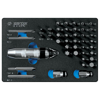 Ложемент для набора торцевых насадок 9-4143FRV, EVA KING TONY 85813232B выполнен из прочного пластика. Материал устойчив к несильным ударам, не крошится и не распадается при длительной эксплуатации.Для каждого инструмента есть отдельное углубление, что позволяет хранить его максимально эргономично.