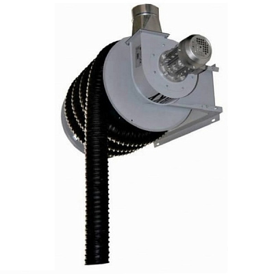 Группа вытяжных катушек соединяется воздуховодами и удаление выхлопных газов происходит при помощи вентилятора.