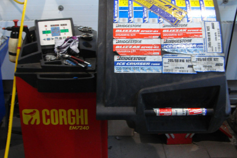 - станок для балансировки колес CORGHI EM7240 и шиномонтажный стенд CORGHI со взрывной накачкой шин;
