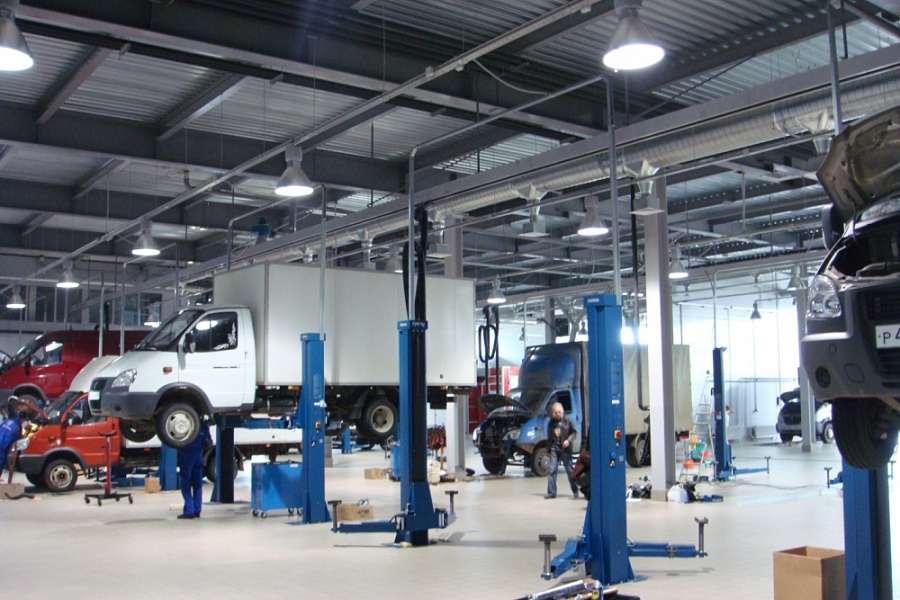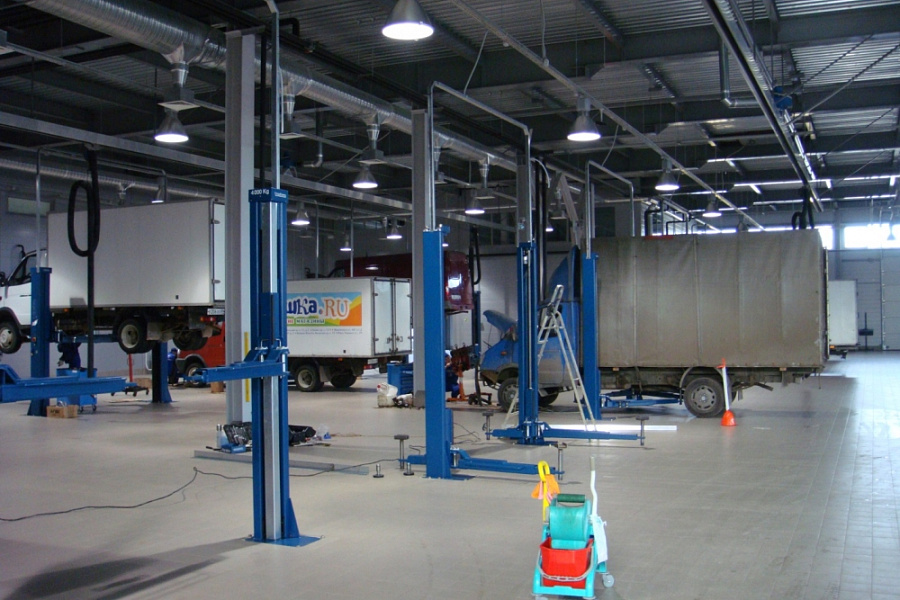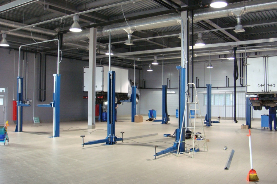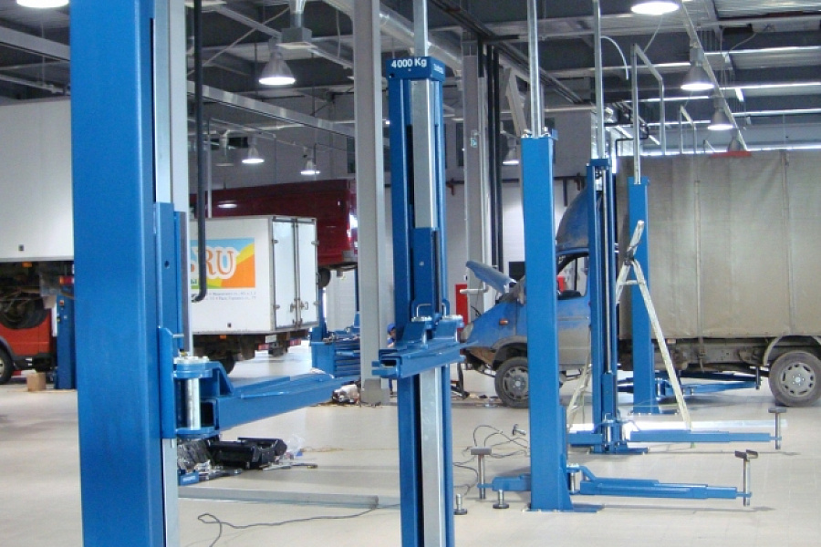 - слесарные посты (11 штук), были оснащены электромеханическими подъемниками премиум класса Nussbaum моделей 2.40 SL и 2.50 SL;